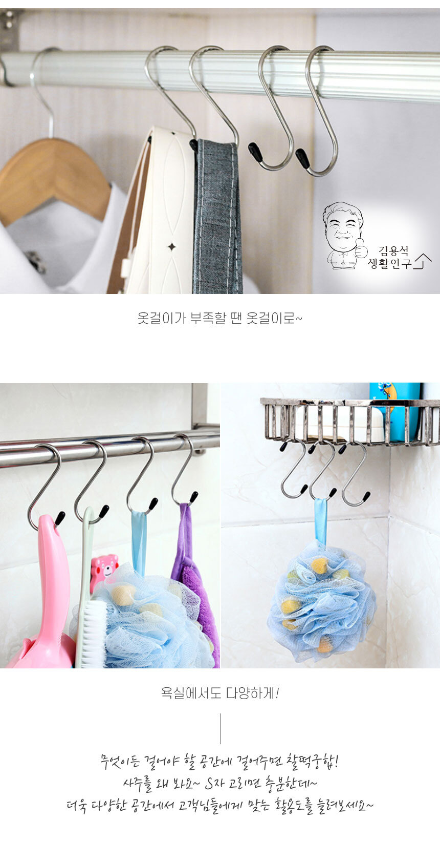 스텐 S고리 3개입 다용도걸이 고리 행거 도어훅