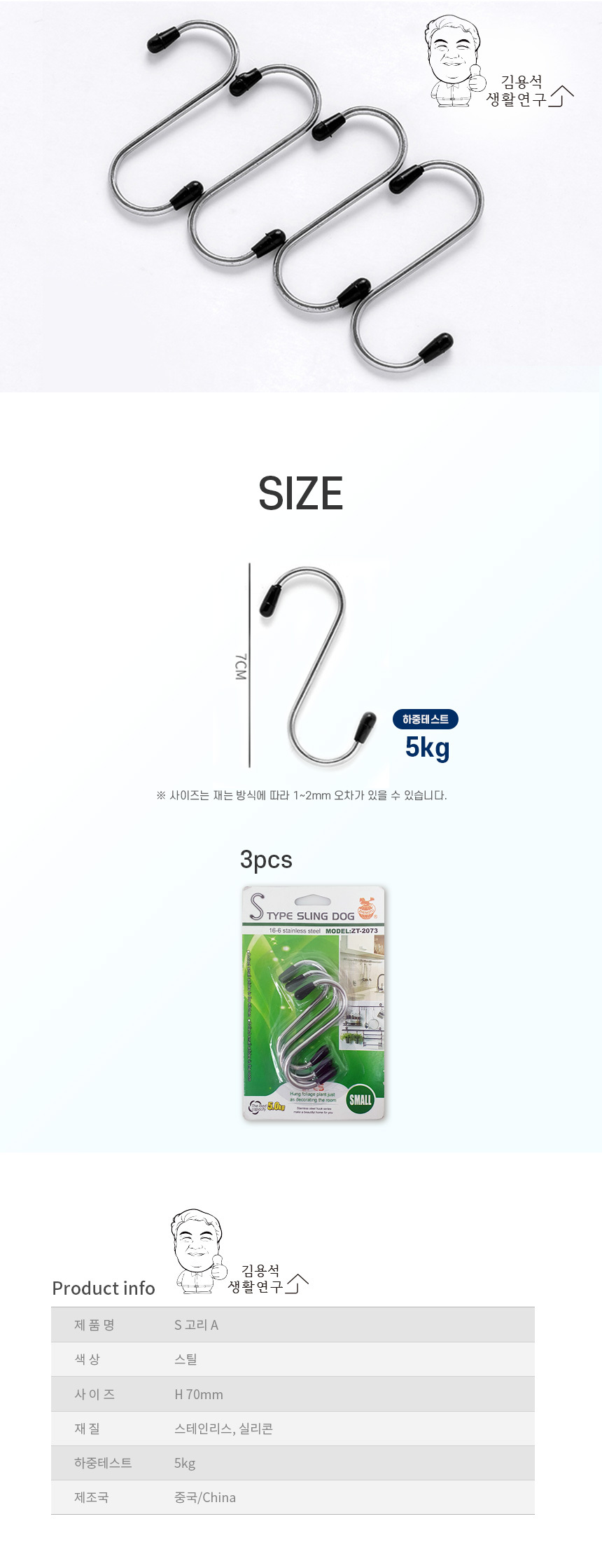 1. 품명 및 모델명 : 스텐 S고리 3개입
