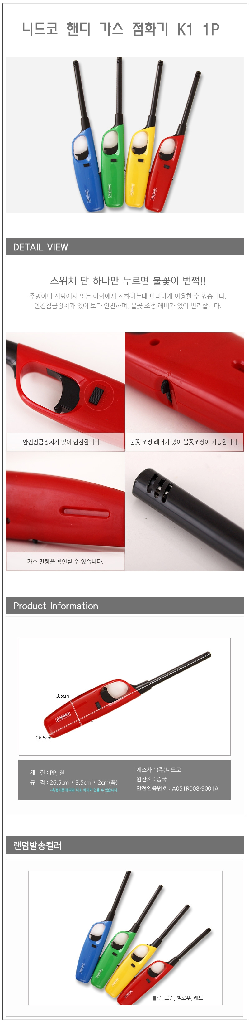 니드코 핸디 가스 점화기 K1 1P 가스라이터 가스총 가