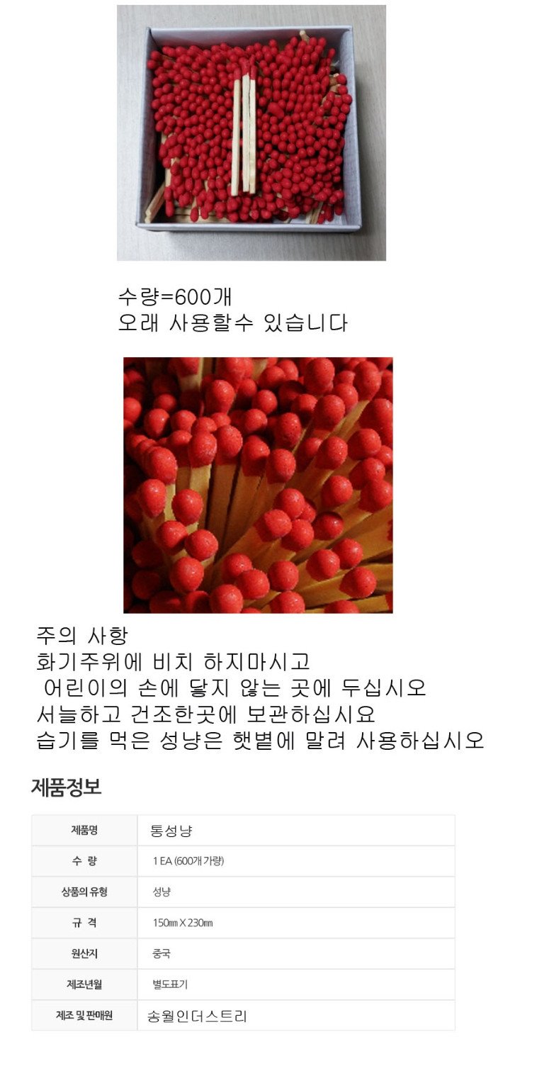 모델명 송월 통성냥 600개비 X 200통