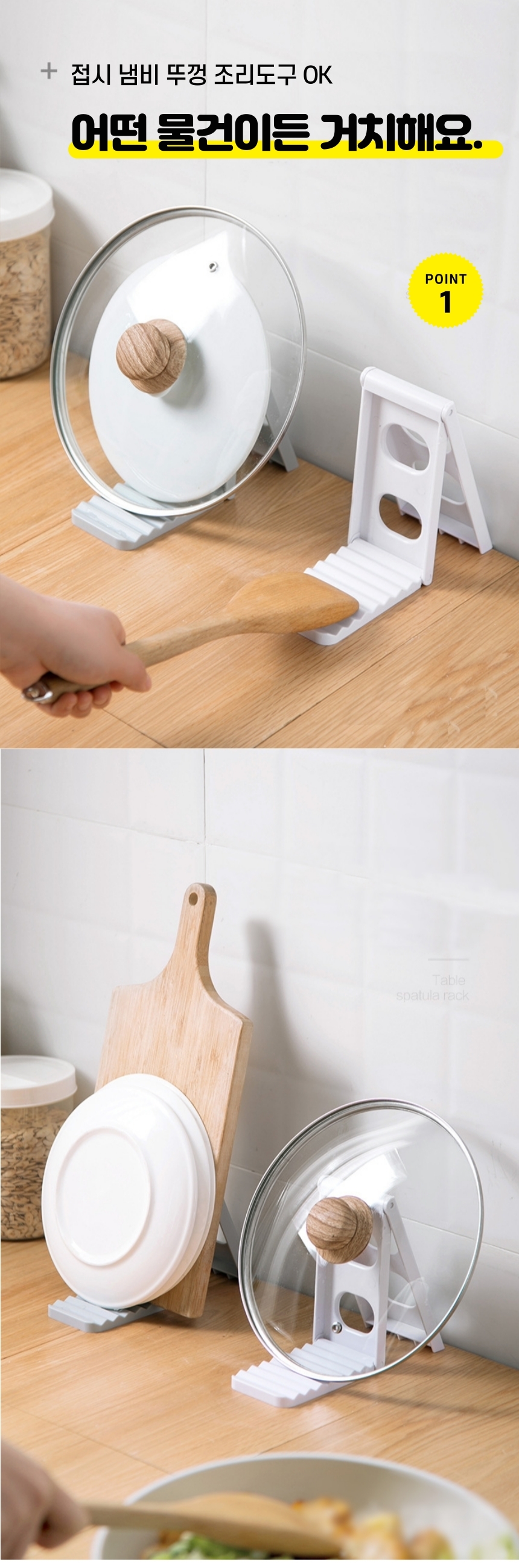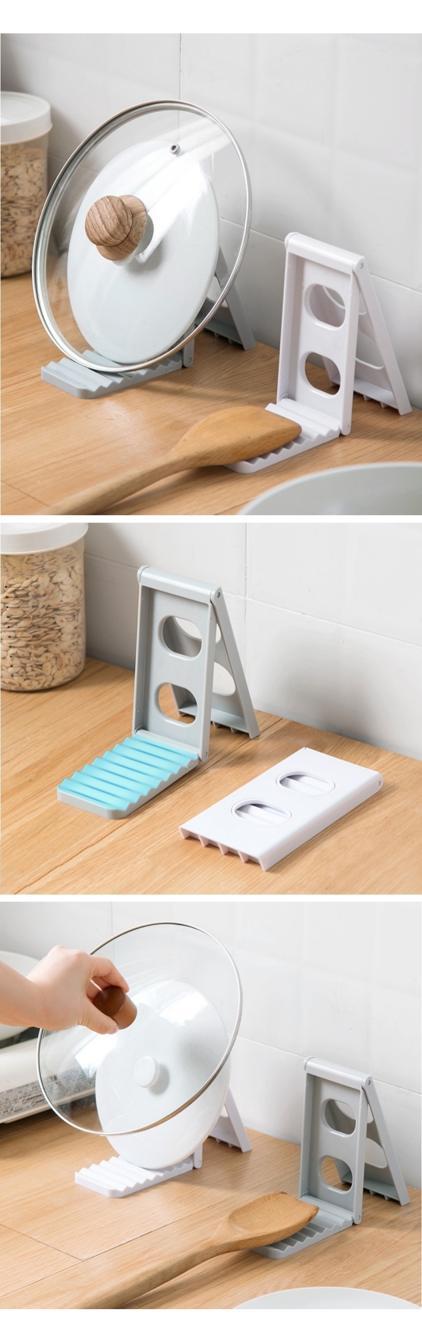 냄비 뚜껑 다용도 접시 거치대 위생적인 조리도구 정리대 이미지/