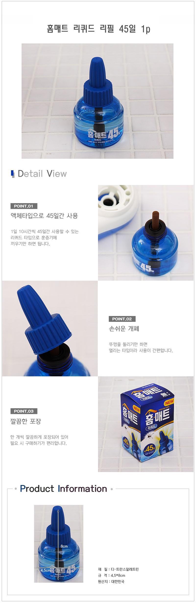 홈매트 리퀴드 리필 45일 1p 에프킬라 모기약 모기제 이미지/
