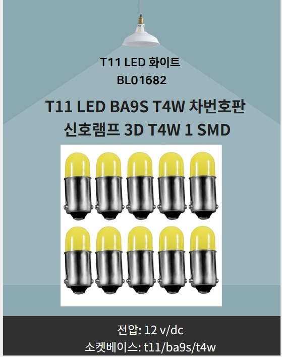 T11 LED BA9S T4W 차번호판 신호램프 3D T4W 1 SMD