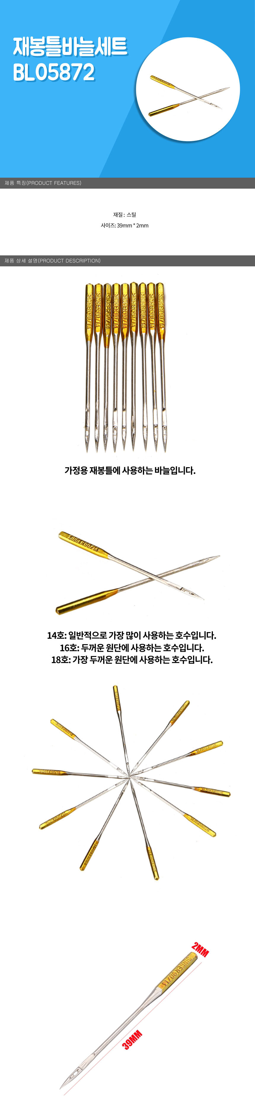 재봉틀 바늘 세트 봉제 미싱 제봉기 부품 소잉 이미지/