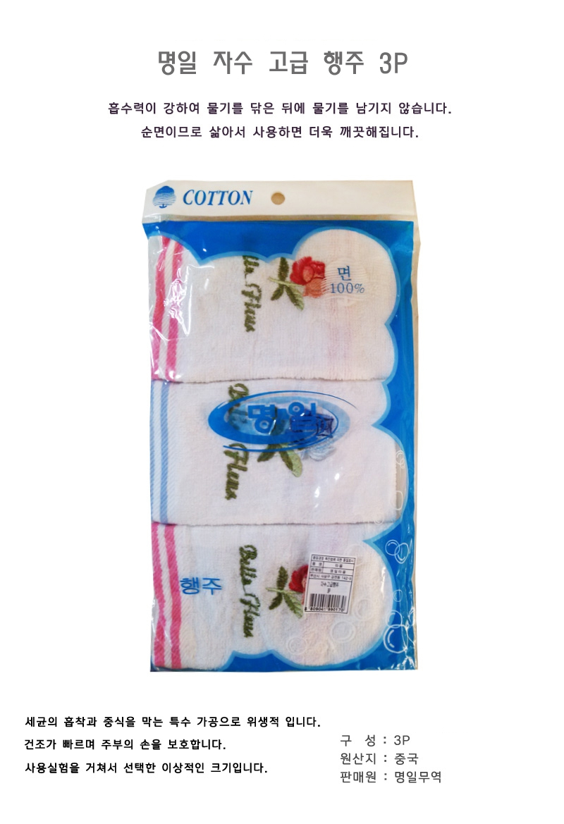 명일 자수 고급 행주 3P 면행주 고급행주 걸레 주방행