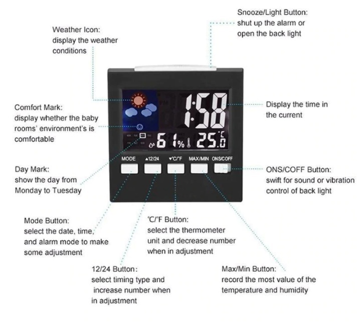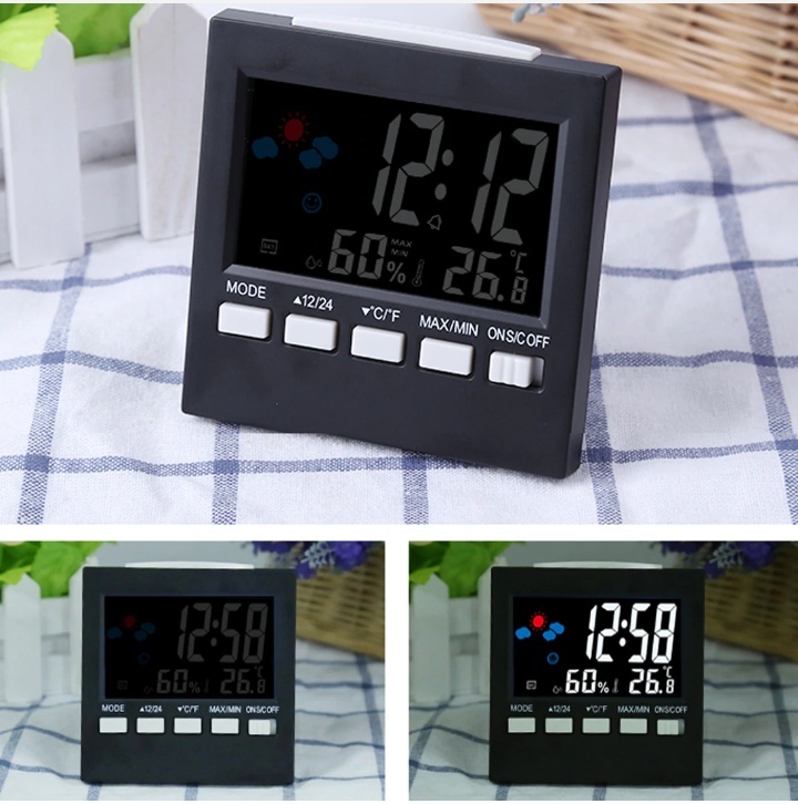 디지털 온도계 습도계 LCD 시계 알람 스누즈 달력 이미지/