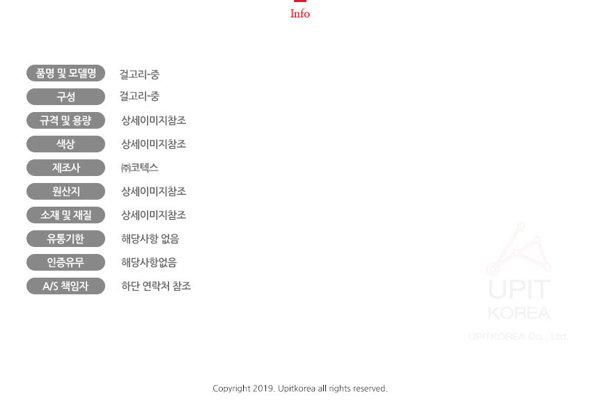 1. 품명 및 모델명 : 상세정보별도표시