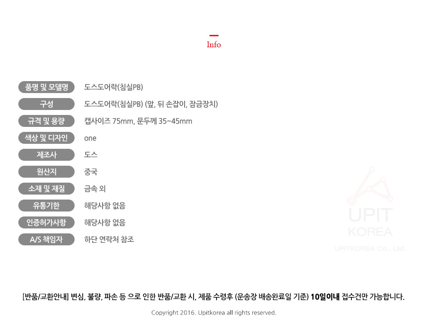 • 반품/환불조건: 도착후 1주일 이내 사용하지 않은 상태에서 가능합니다,초기제품 이상의 경우 동일한 제품으로 1:1 교환원칙, 사용후 제품이상은 A/S를 원칙으로 합니다,