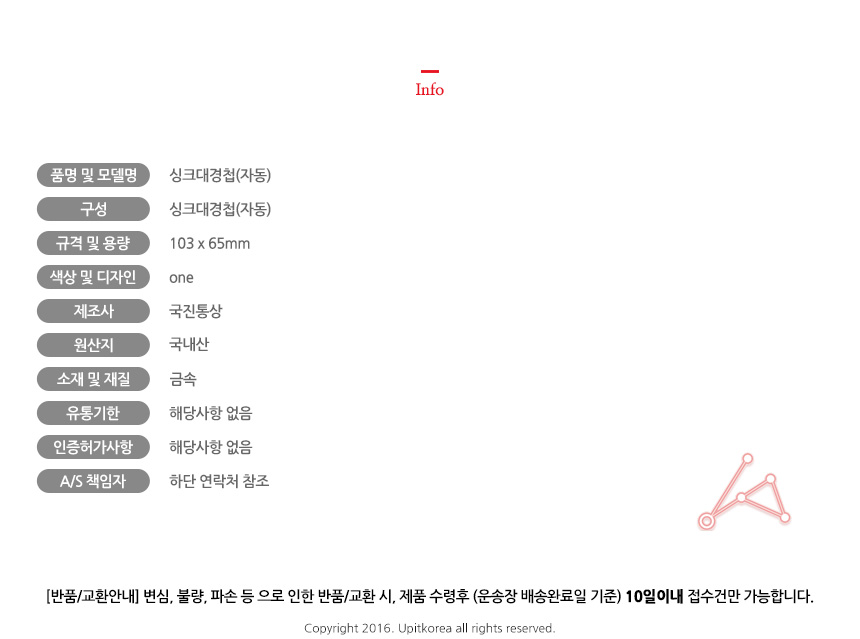 • 초기제품 이상의 경우 동일한 제품으로 1:1 교환원칙, 사용후 제품이상은 A/S를 원칙으로 합니다.