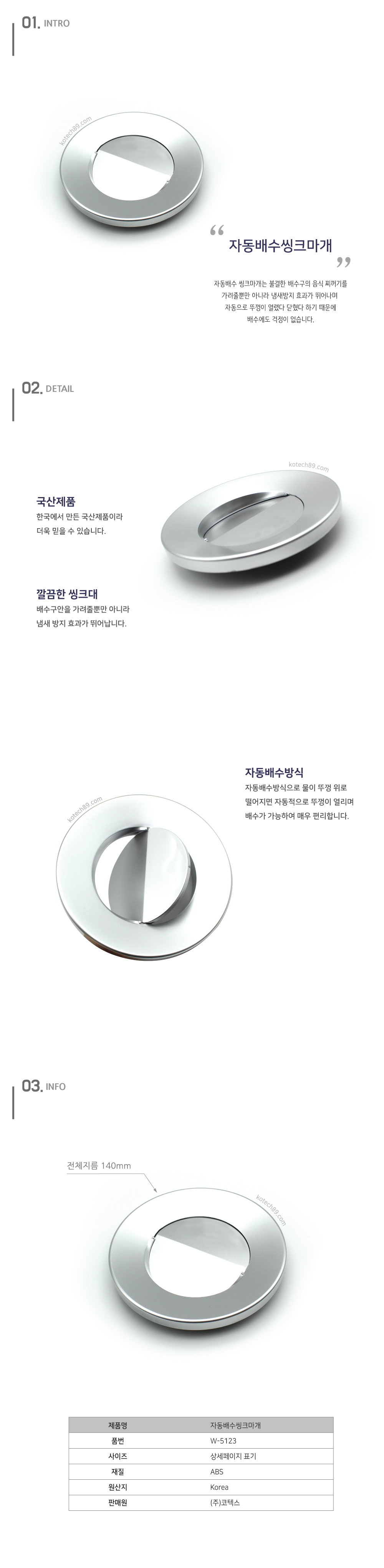 코텍 자동배수 싱크대 배수구 덮개 냄새방지 자동개폐 이미지/