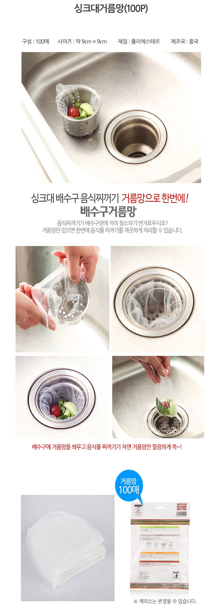 씽크 배수구 거름망(약9x9cm) 100매