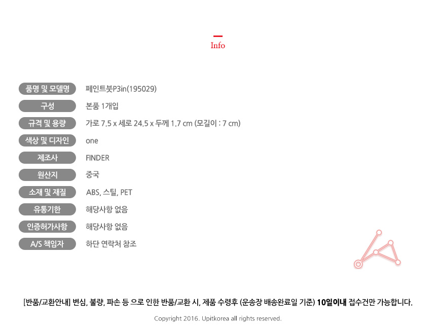 • 반품/환불조건: 도착후 1주일 이내 사용하지 않은 상태에서 가능합니다,초기제품 이상의 경우 동일한 제품으로 1:1 교환원칙, 사용후 제품이상은 A/S를 원칙으로 합니다,