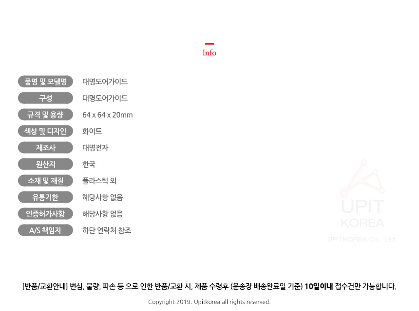 • 초기제품 이상의 경우 동일한 제품으로 1:1 교환원칙, 사용후 제품이상은 A/S를 원칙으로 합니다.
