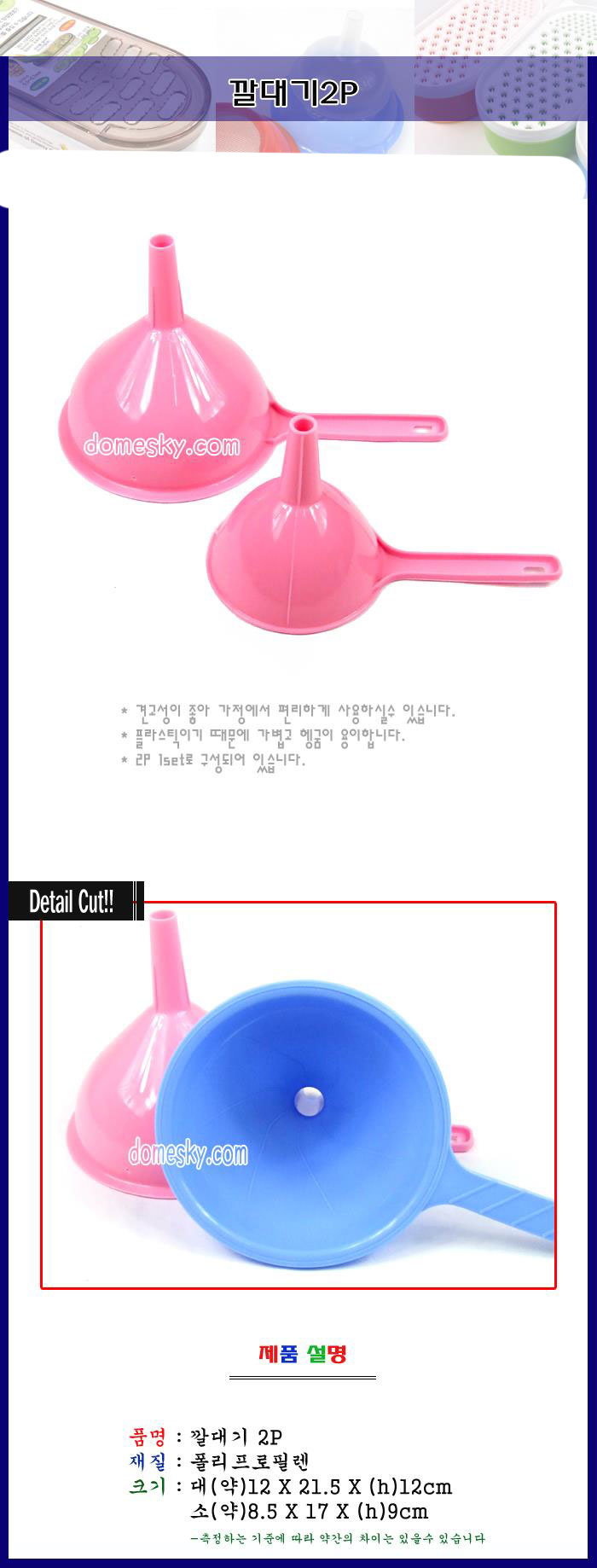 주방용품 깔대기 2P-색상랜덤 소분용기 화장품소분