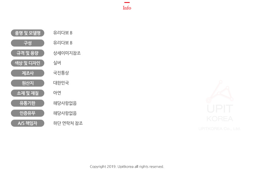1. 품명 및 모델명 : 상세정보별도표시