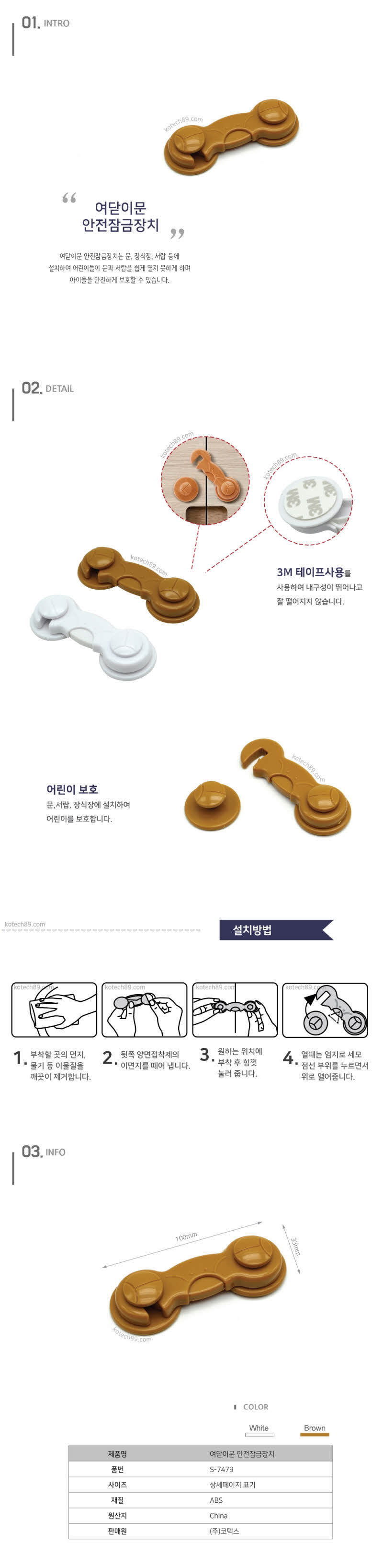 코텍 여닫이문 잠금장치 S7479