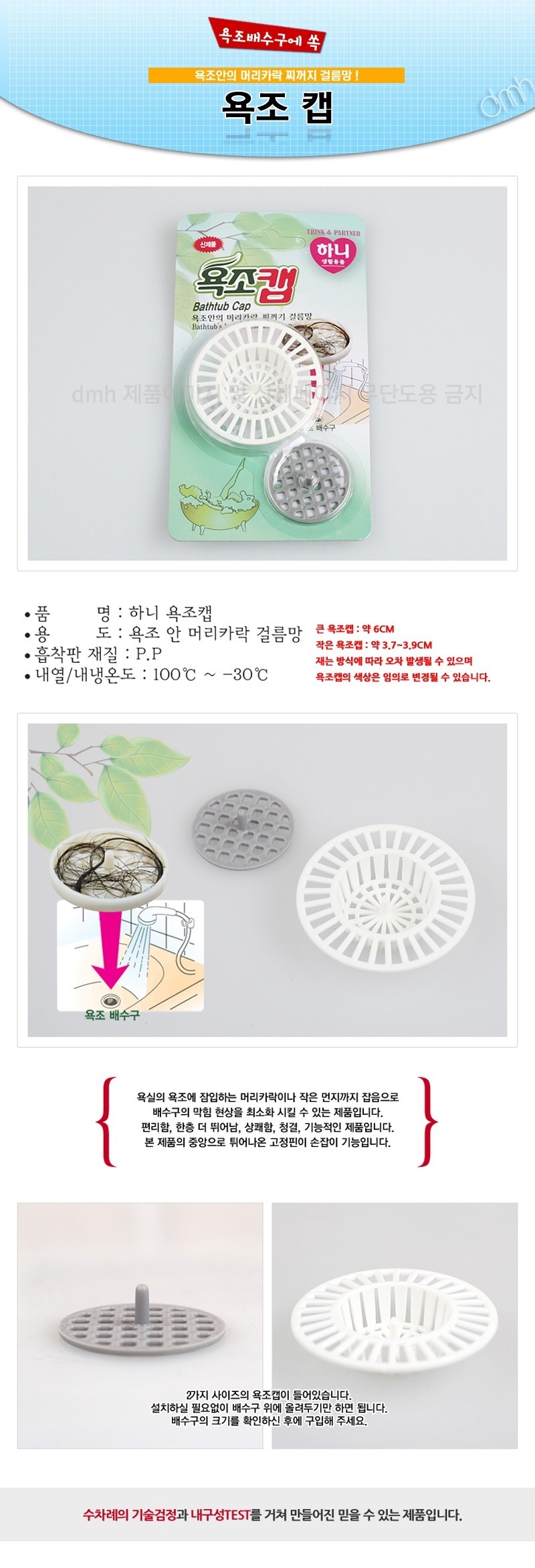 욕조 배수구캡 2가지 사이즈 머리카락 이물질