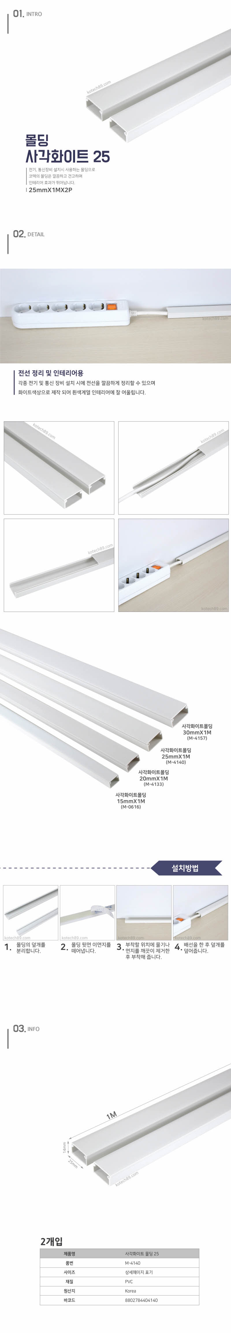 코텍몰딩)사각화이트 25mm-2p 이미지/