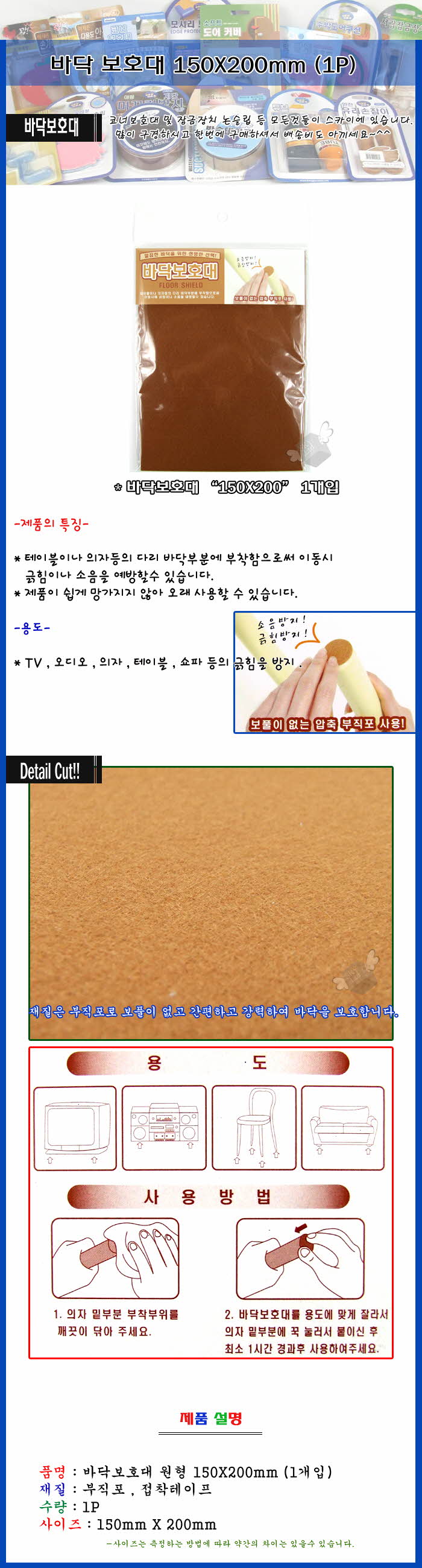 우일 바닥보호대 150X200mm (1P) 이미지/