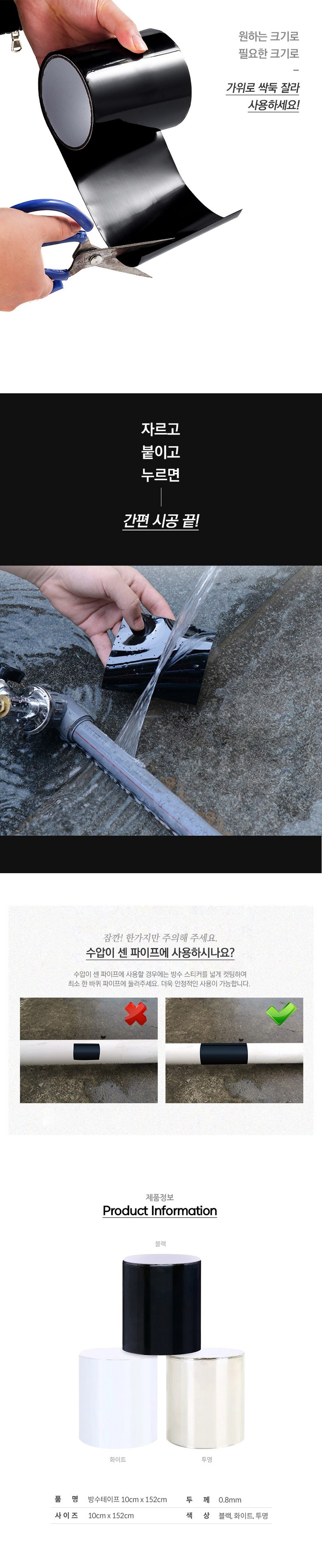 다용도 만능 초강력 화장실 씽크대 옥상 파이프 크랙 보수 누수방지 투명 방수테이프
