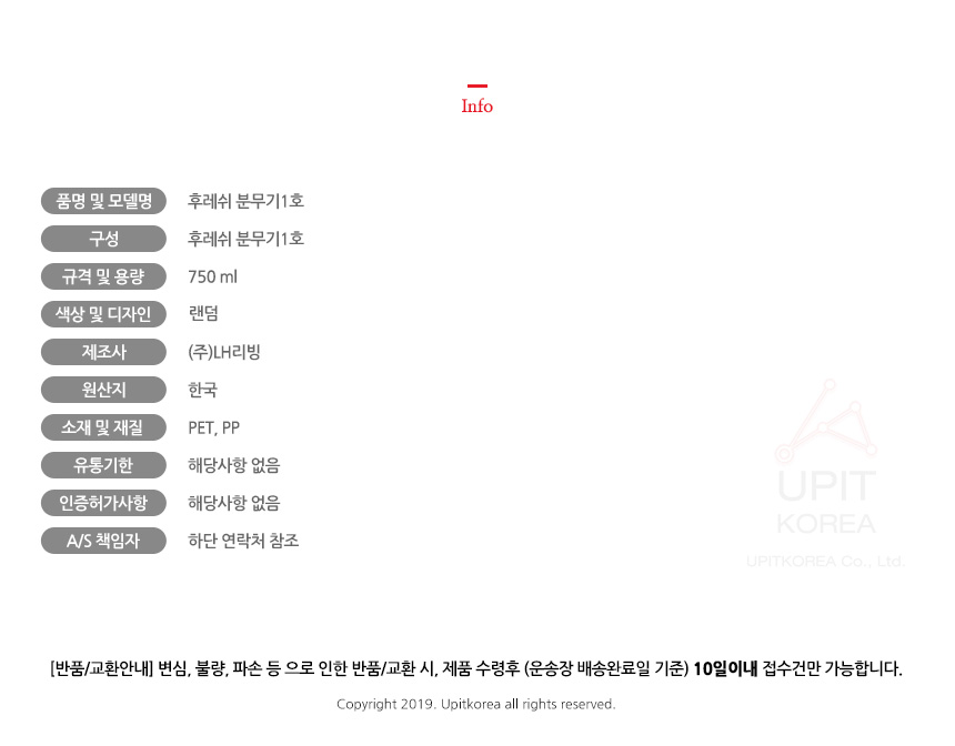 • 초기제품 이상의 경우 동일한 제품으로 1:1 교환원칙, 사용후 제품이상은 A/S를 원칙으로 합니다.
