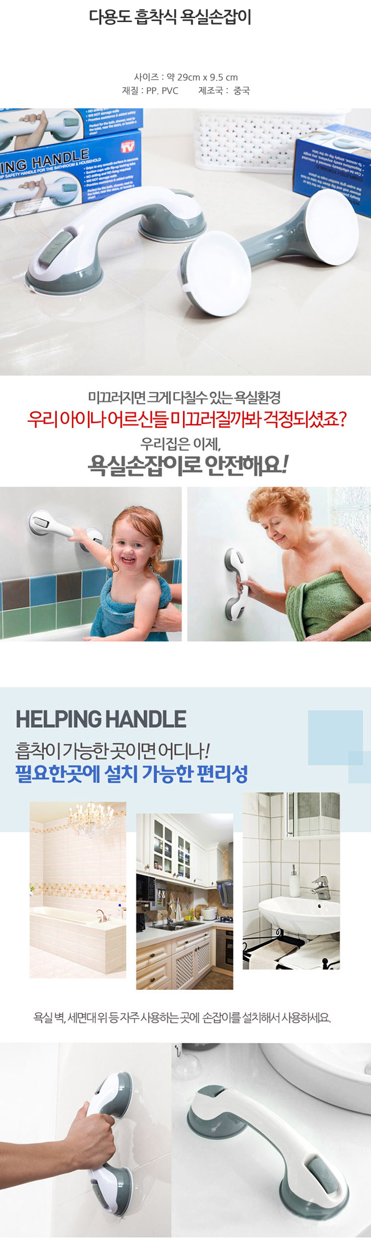 흡착식 욕실손잡이(약29x9.5cm) 보조 넘어짐방지 이미지/