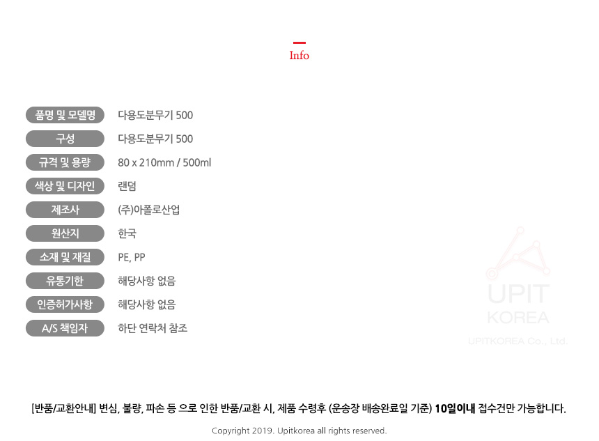 • 초기제품 이상의 경우 동일한 제품으로 1:1 교환원칙, 사용후 제품이상은 A/S를 원칙으로 합니다.