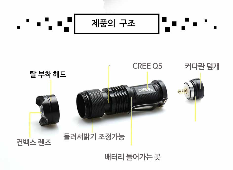 미니 손전등 2000루멘 led 조명 토치 랜턴 펜형 휴대