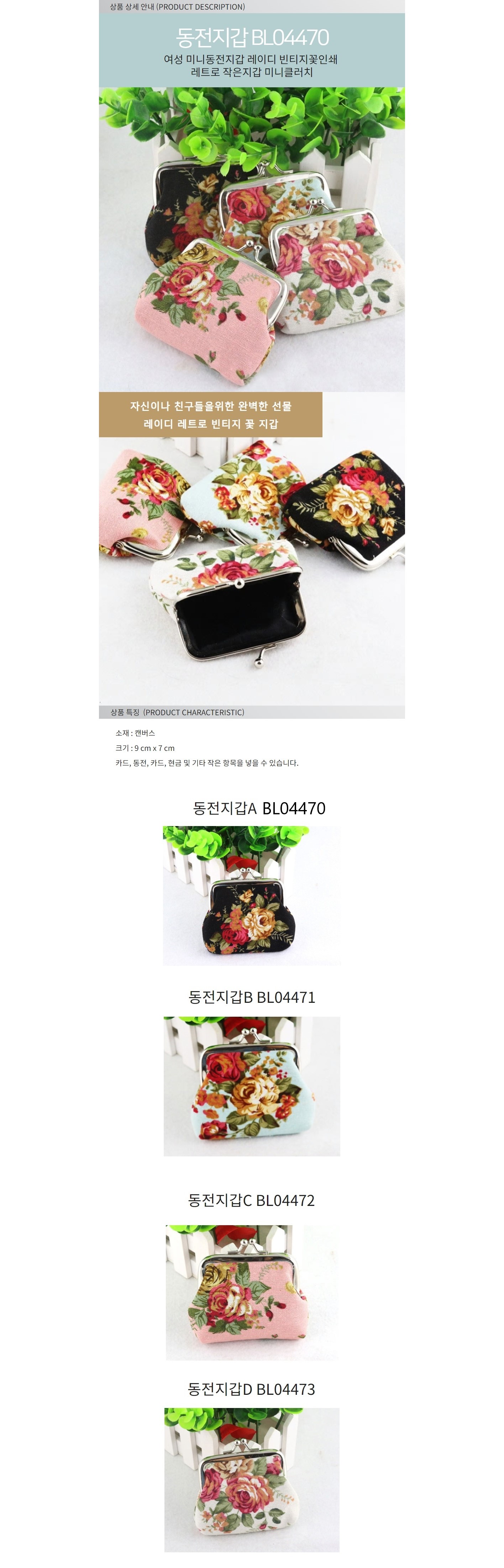 여성미니동전지갑 레이디빈티지꽃인쇄 레트로작은지갑 이미지/