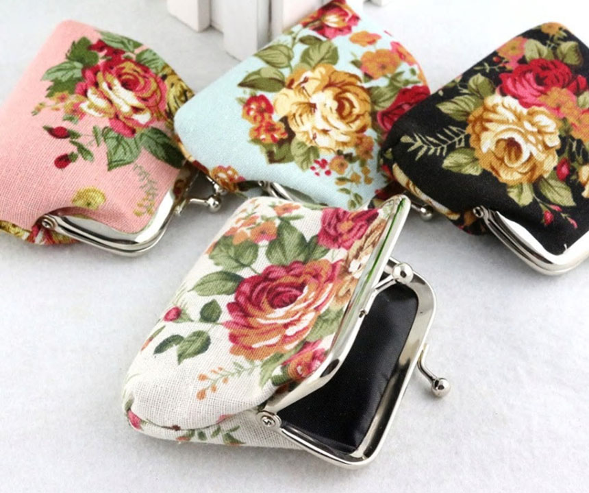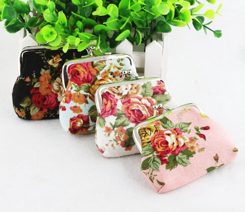 여성미니동전지갑 레이디빈티지꽃인쇄 레트로작은지갑