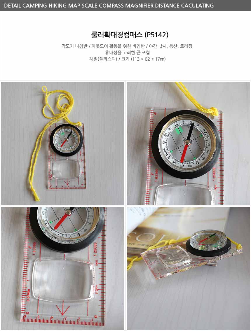 룰러돋보기컴패스 나침반 확대경 휴대용 등산 캠핑