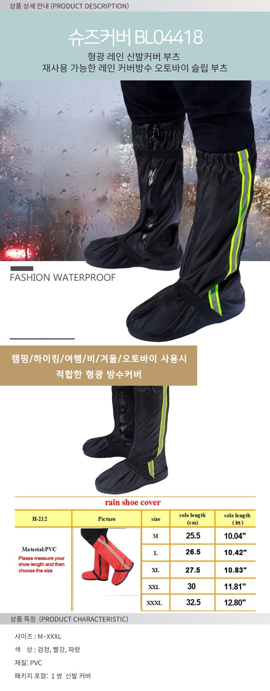 형광레인슈즈커버 재사용 방수 오토바이부츠 레인슈즈