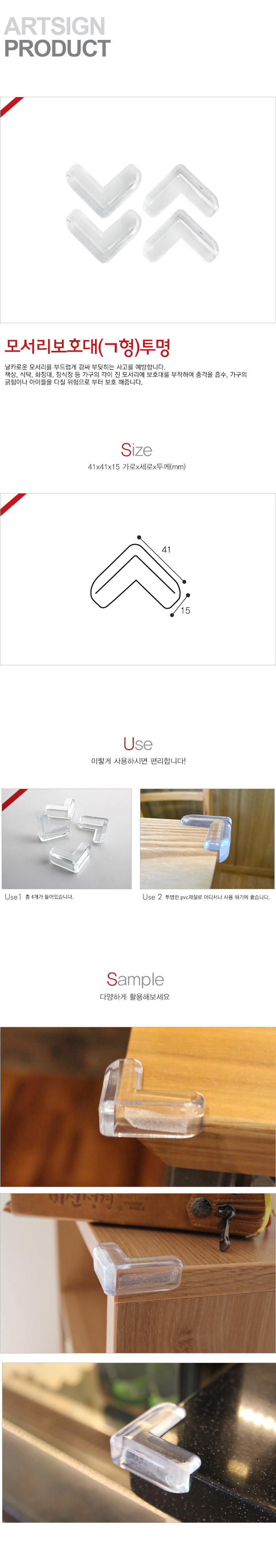 모서리보호대(ㄱ형/투명/41x41x15mm)/L1001/9865 이미지/