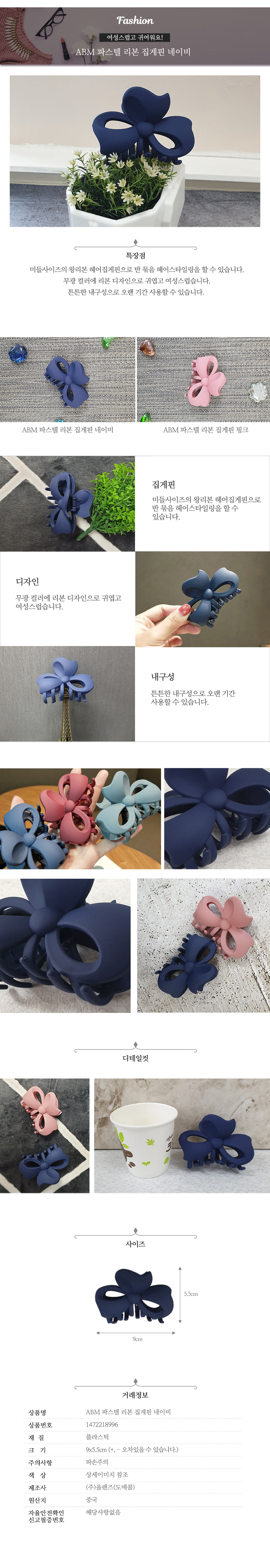 리본집게핀 네이비 파스텔 리본핀 집게핀 색깔핀 핀
