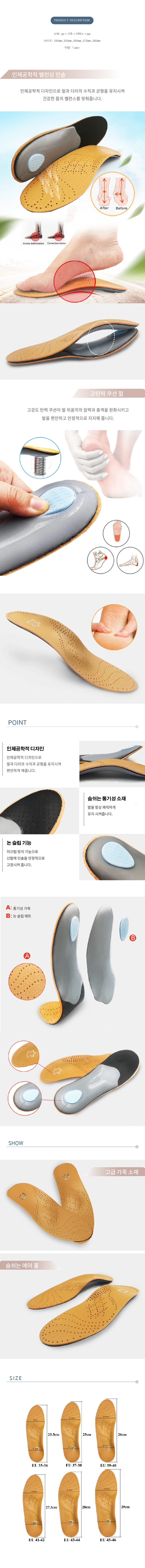 가죽깔창 통기 탈취 패드 충격완화 아치 오다리 밑창