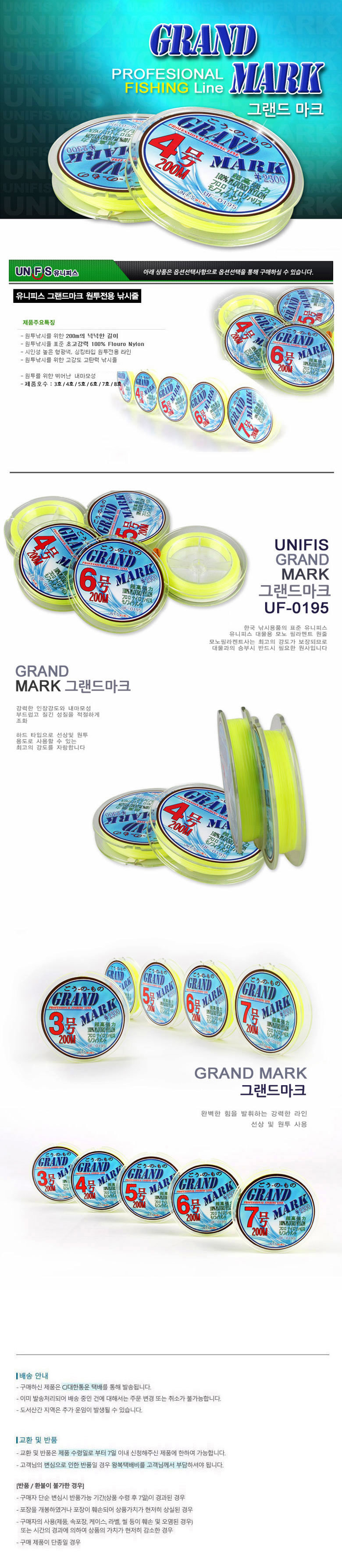 GRAND 낚시용품 MARK 원투낚시줄 유니피스 낚시줄