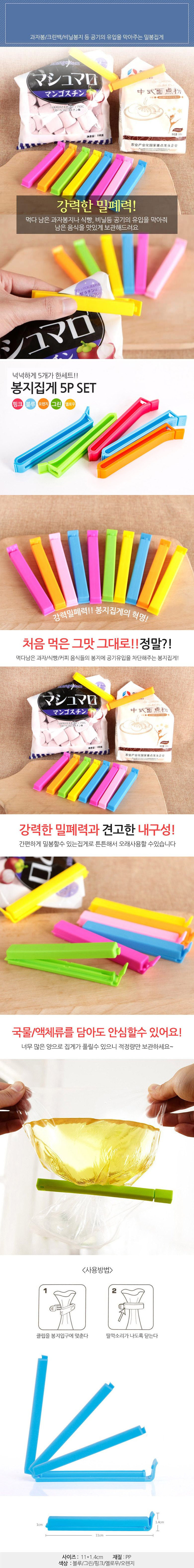 다용도 집게 5p 과자 봉투 봉지 밀봉 매장 업소 카페 사무실 주방 키친