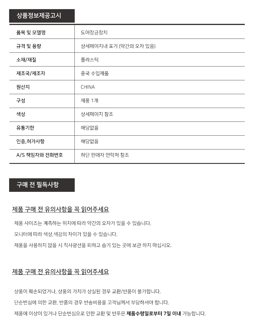 A/S책임자와 전화번호 또는 소비자 상담 관련 전화번호 상품상세설명에 표기