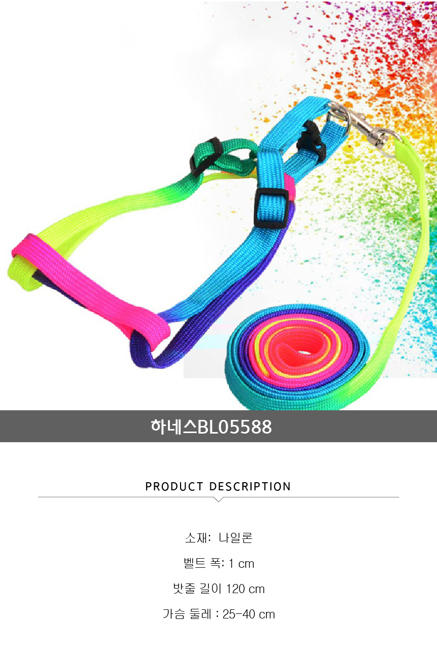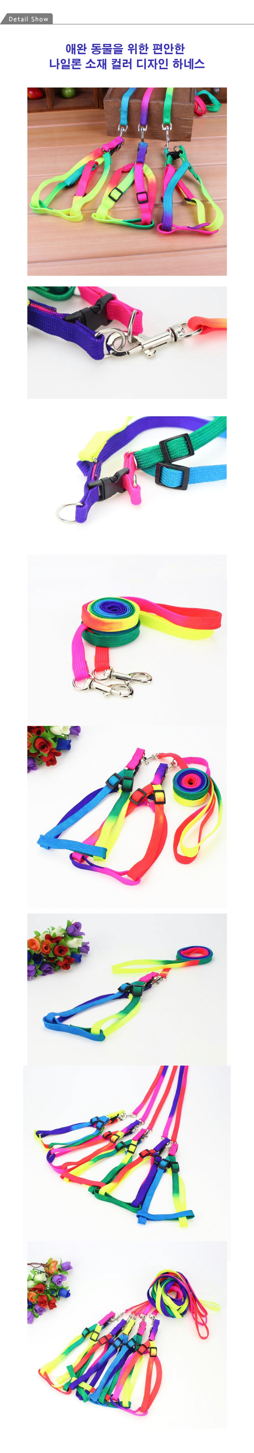 하네스 애완 리드줄 나일론 컬러 강아지 가슴줄 산책 이미지/