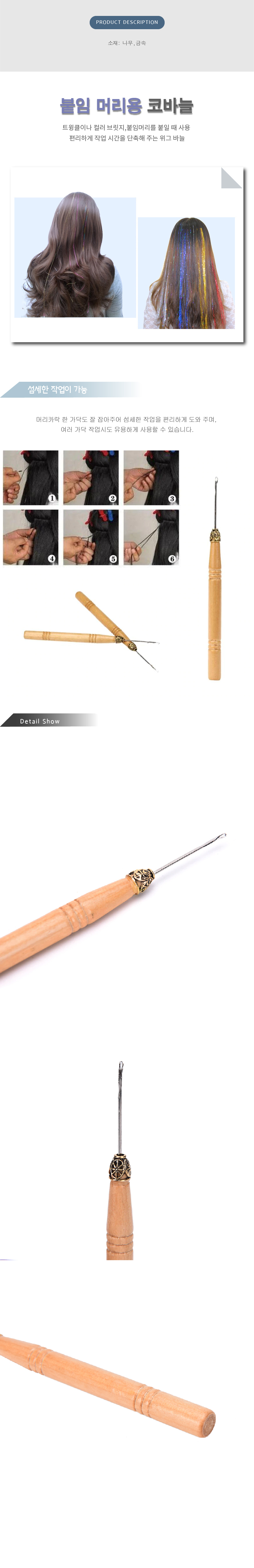 위그바늘 가발 뜨개질 후크 루프 머리연장 붙임머리