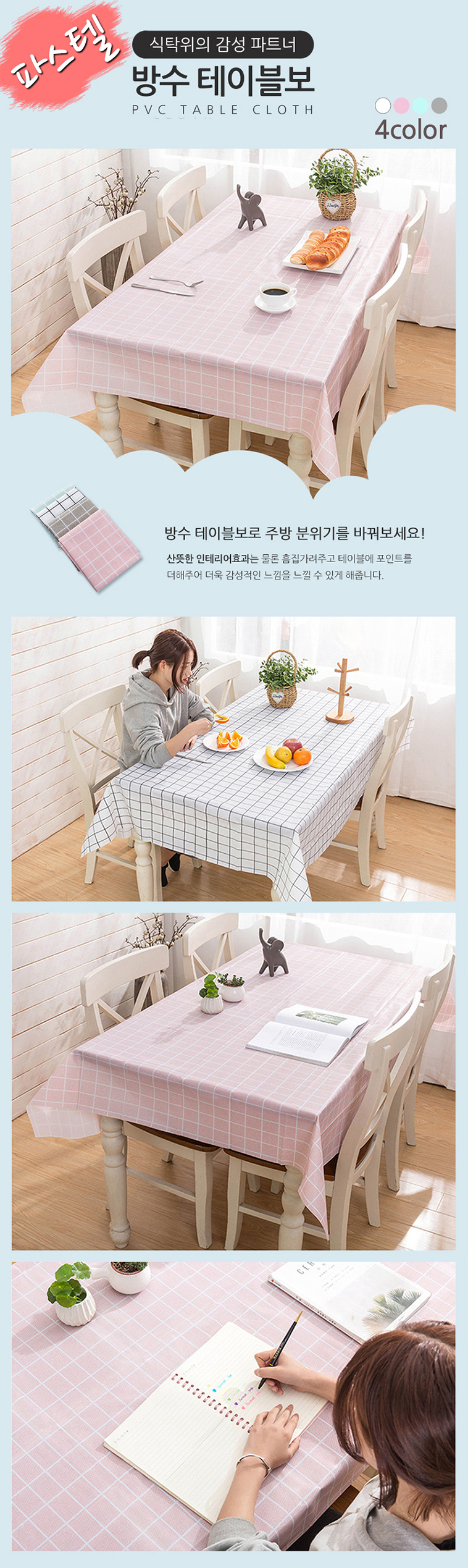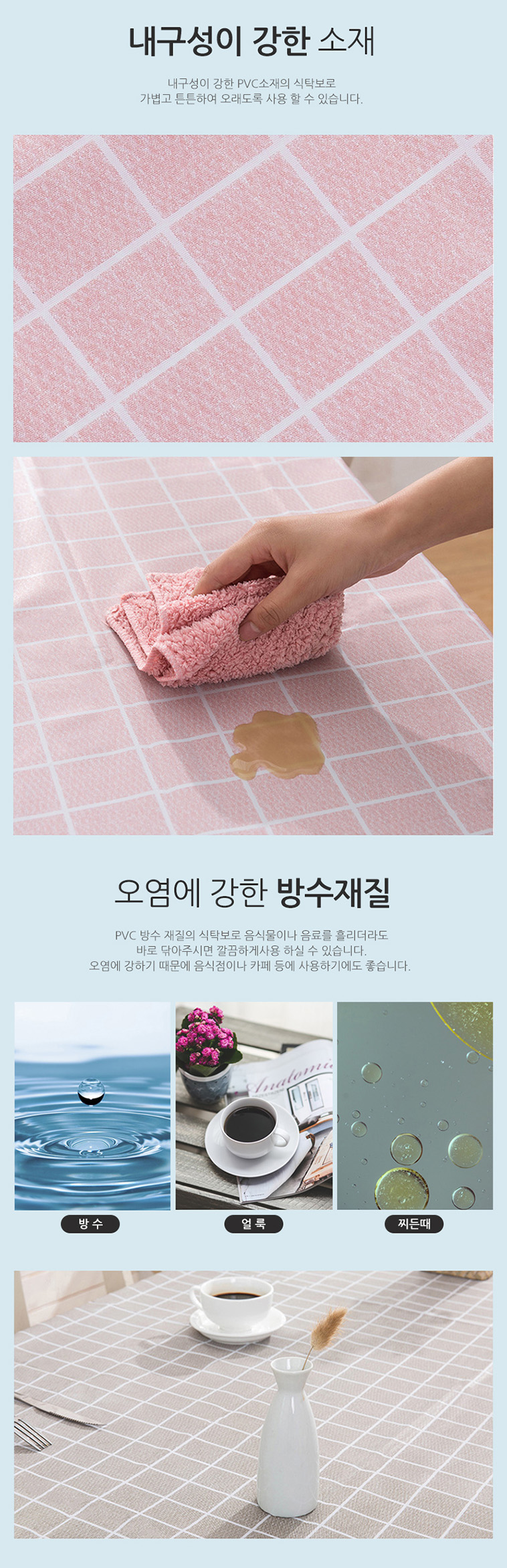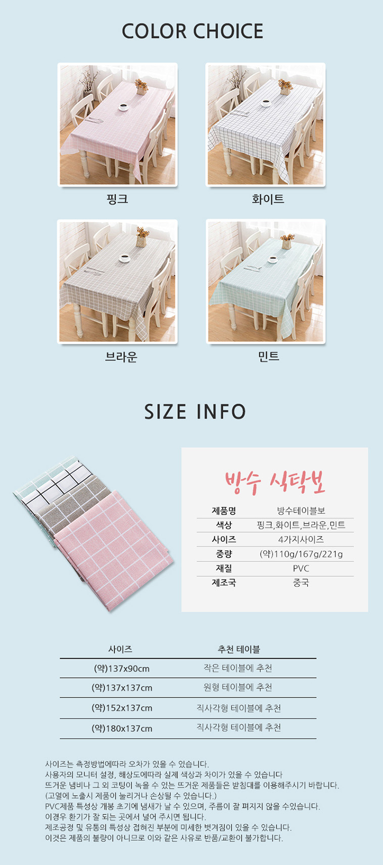 파스텔체크 방수테이블보 식탁보 테이블매트 137x137