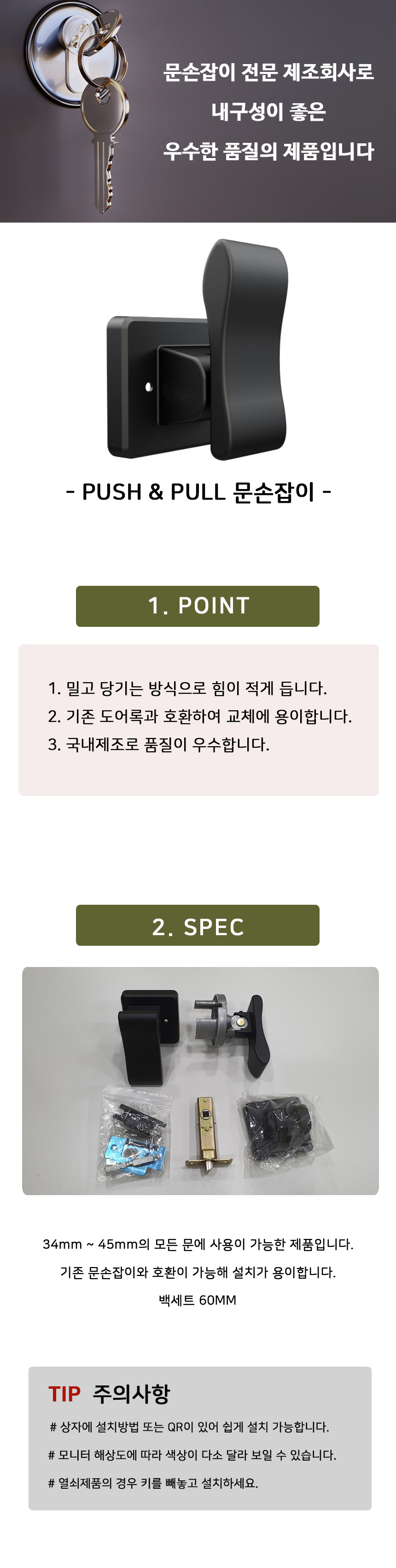 1. 품명 및 모델명 : 문손잡이