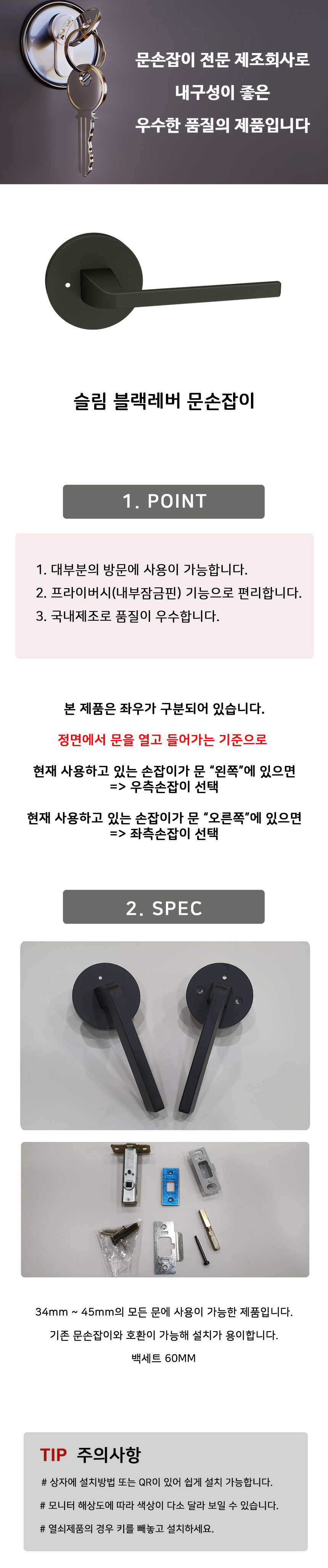 슬림핏 블랙 화장실 문손잡이