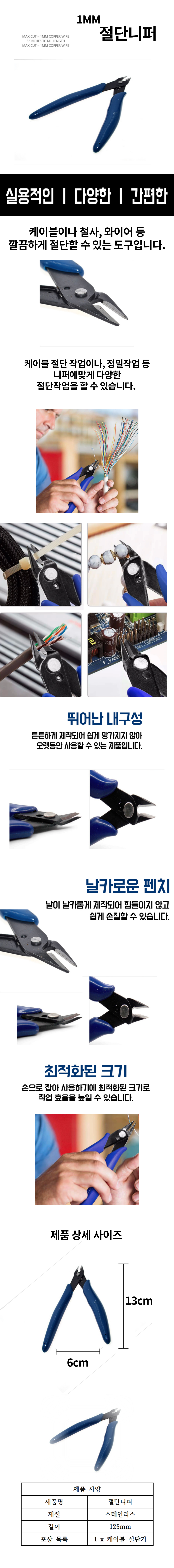 니퍼 커터 절단 공구 와이어 플라이어 구리 diy 1mm