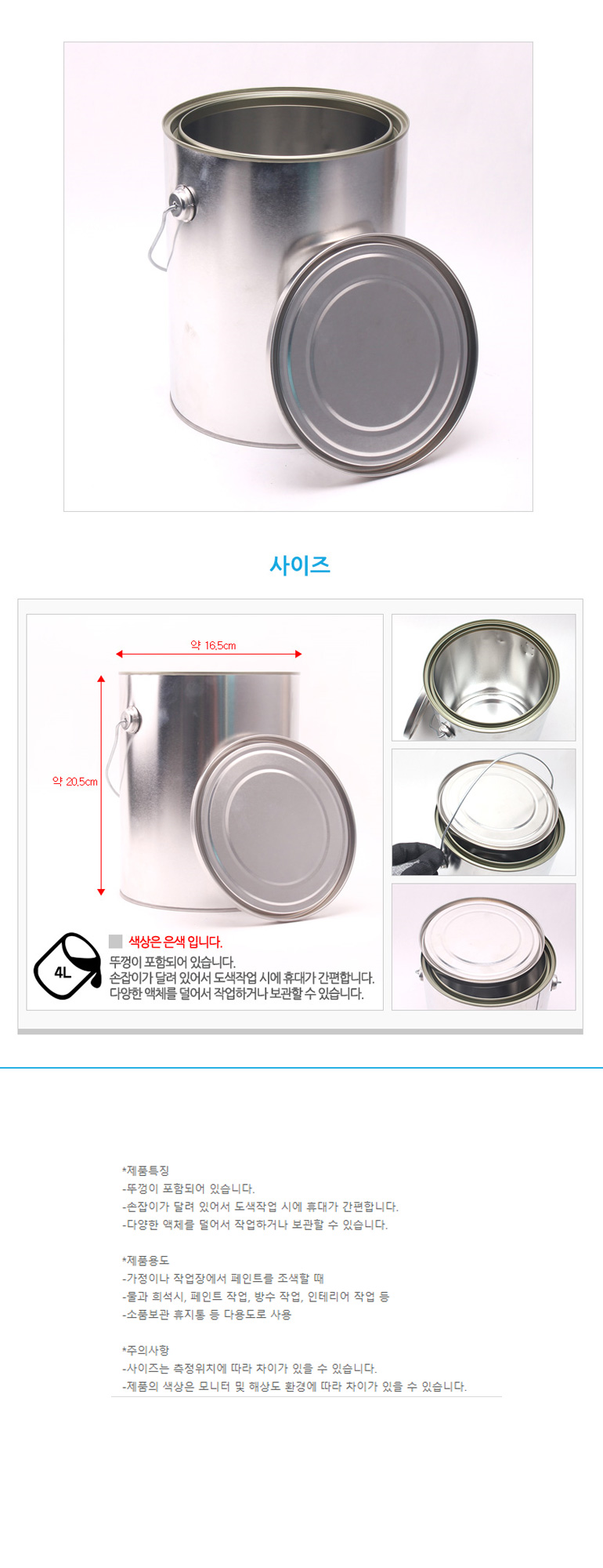 원형뚜껑사이깡4L 페인트통 페인트 용기