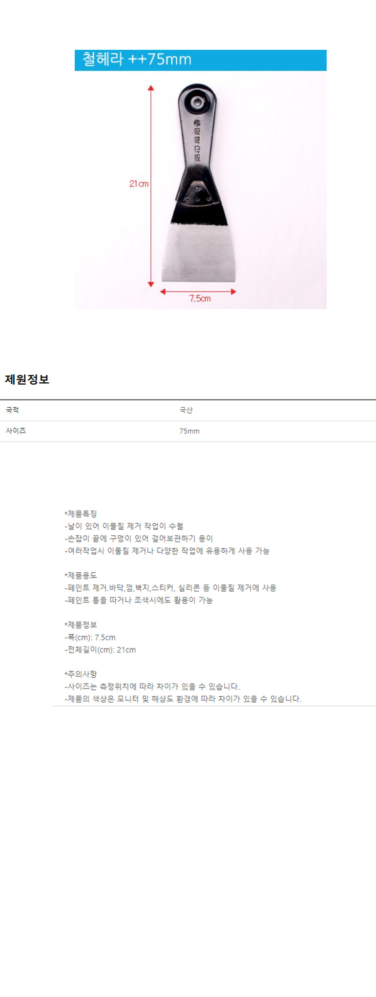 헤라 철헤라 성창 7.5cm 스크레퍼헤라 스크레퍼 스크래퍼 이미지/