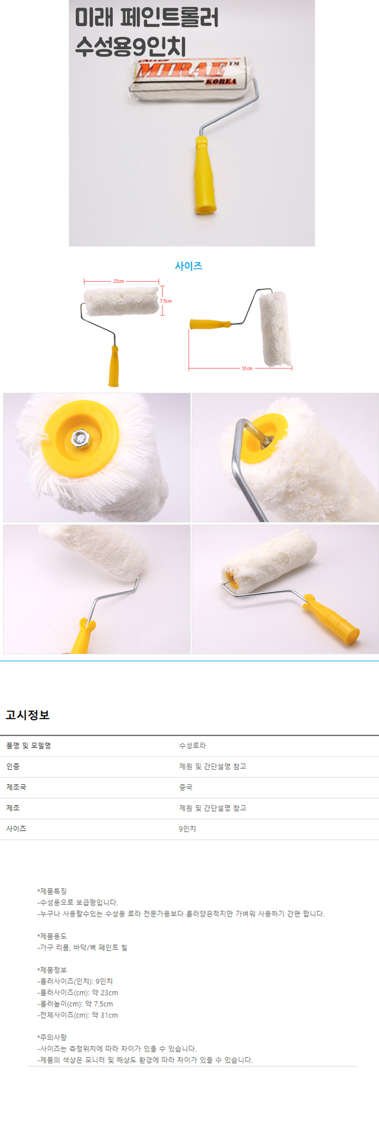 수성로라 9인치 페인트롤러붓 페인트 롤러