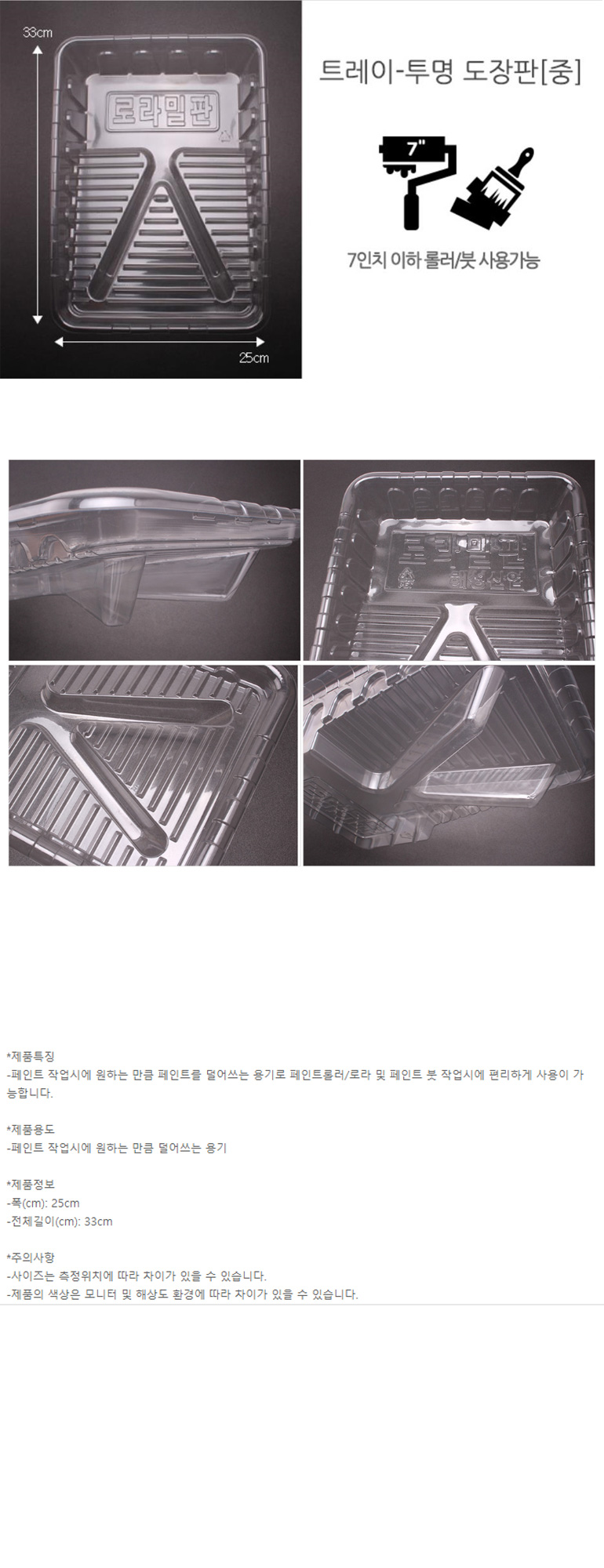 해청 도장판 중 7인치로라용 폭25cm 페인트판 페인트 로라판 이미지/
