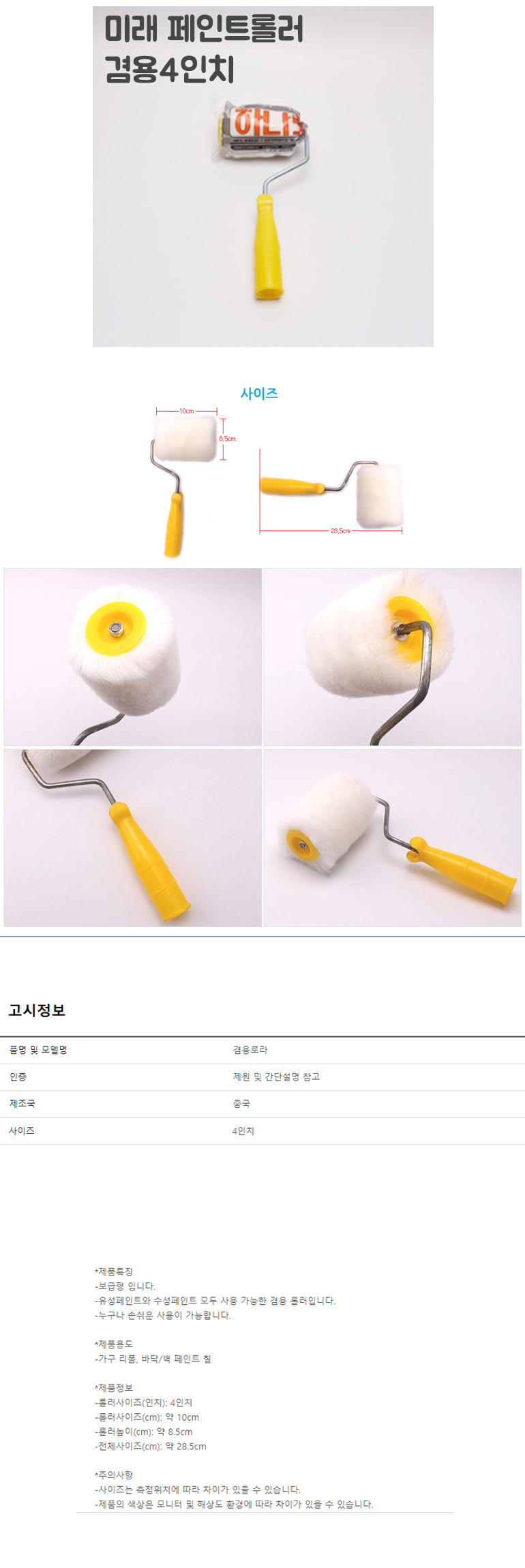 겸용로라 4인치 페인트롤러붓 페인트 롤러