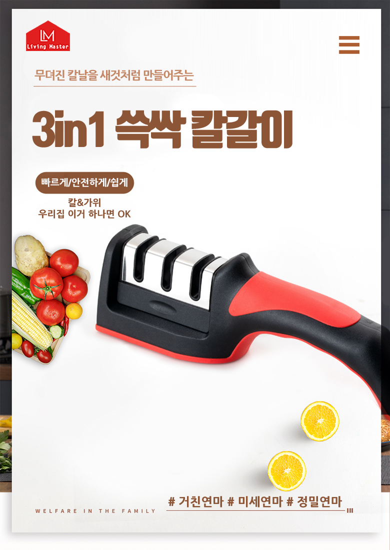 3in1 쓱싹 칼갈이 / 칼 가위 3단계로 깔끔하게 샤프너 칼 연마 수동칼갈이 / 숫돌 연